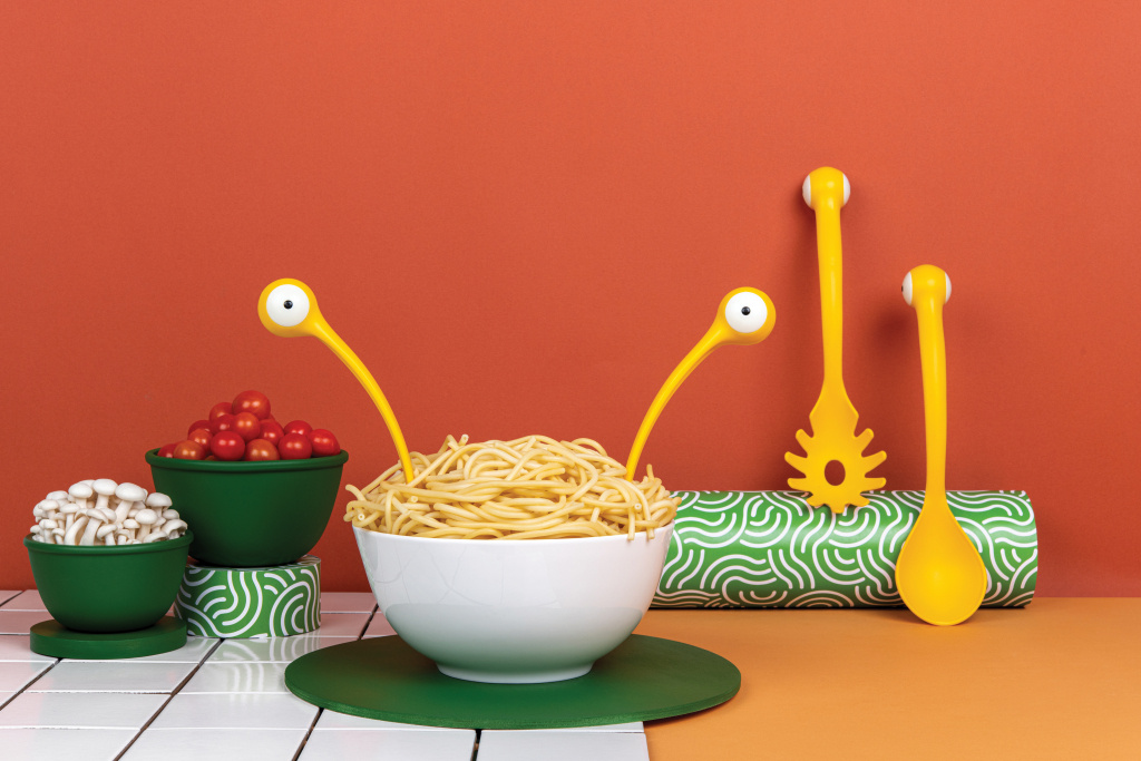 Rond etenstijd komt het Pasta Monster van Ototo langzaam tevoorschijn uit je keukenlade om je bij het avondeten te helpen! De set bevat een spaghettilepel met gat en een ronde opscheplepel, ideaal voor het opscheppen van salades. Lees meer