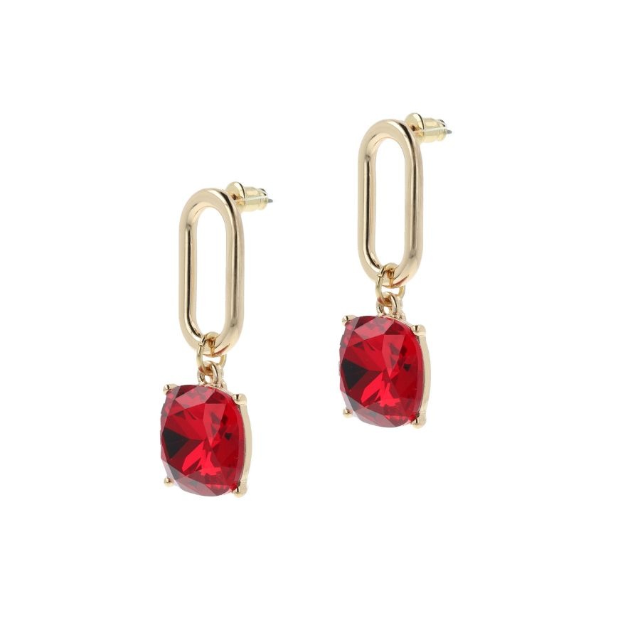 Maak een gedurfd statement met deze opvallende doordraaiers. De combinatie van 14 karaat gouden plating en dieprode kristallen van Swarovski zorgt voor een luxueuze uitstraling.