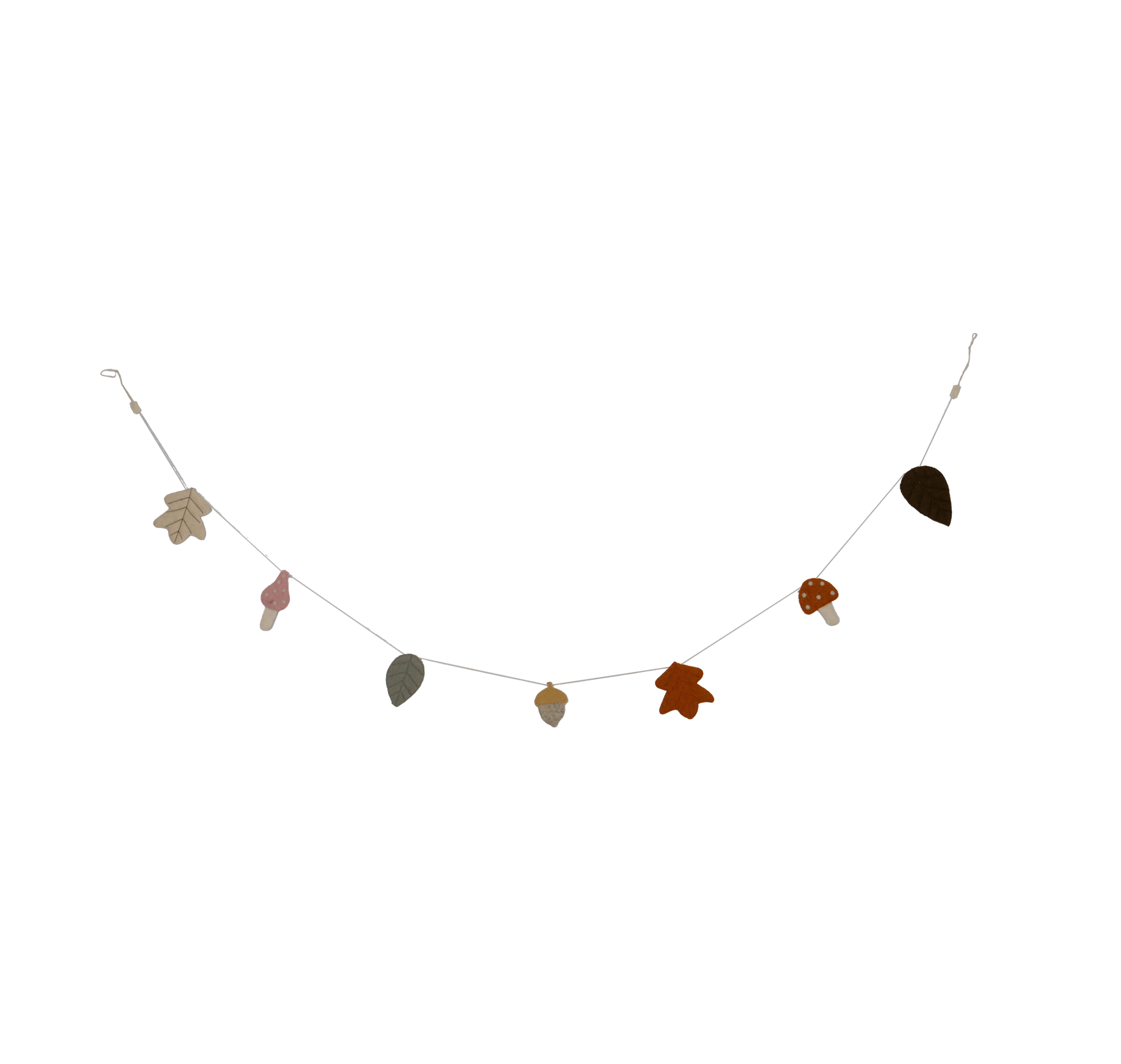 Een charmante slinger met herfstafbeeldingen in diverse kleuren. Handgemaakt van vilt, 180 cm lang met 7 figuren. Perfect voor een warme herfstsfeer! Materialen: vilt en touw.