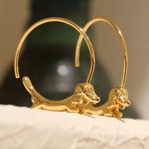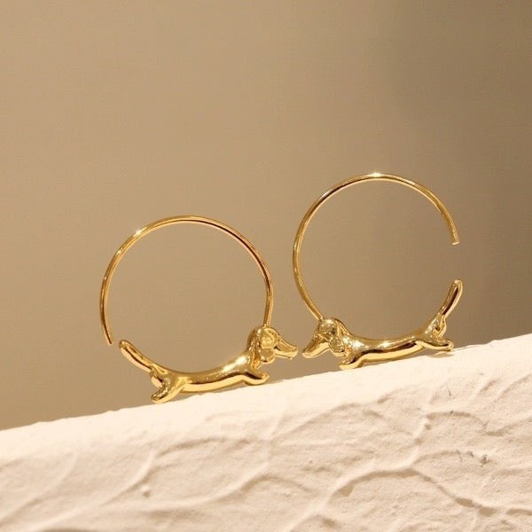Vliegende teckel hond hoepel oorbellen