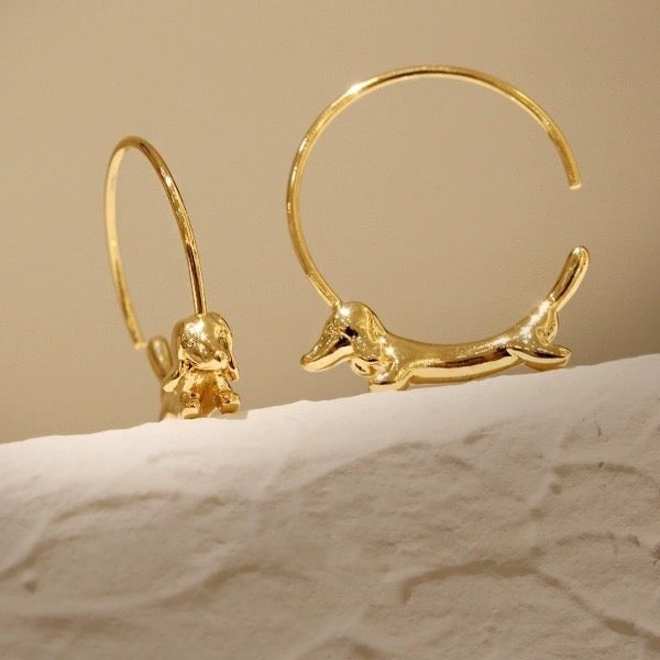 Elegante oorringen met een speels teckelontwerp, gemaakt van goudkleurig materiaal en licht van gewicht voor comfortabel dagelijks dragen. Lees meer